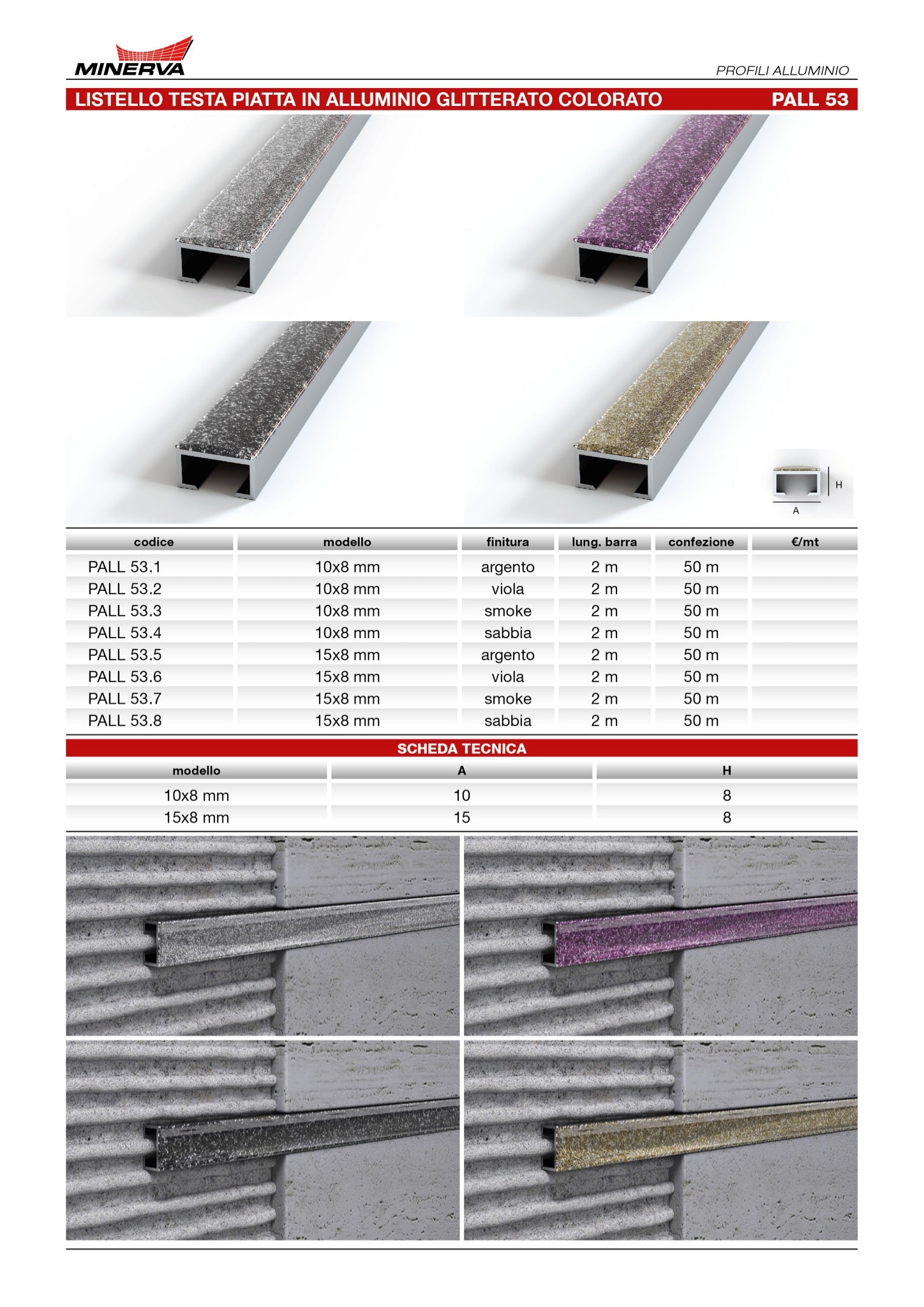 Profilo listello in ALLUMINIO glitterato argento. Barra 2 m