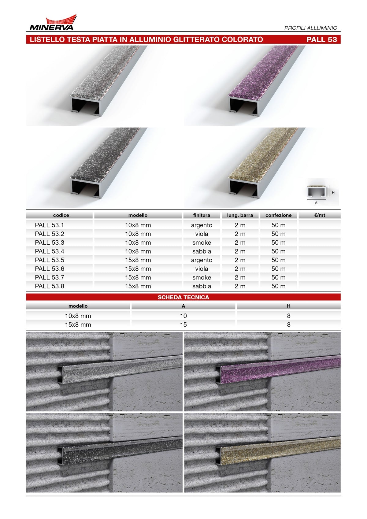 Profilo listello in ALLUMINIO glitterato viola. Barra 2 m