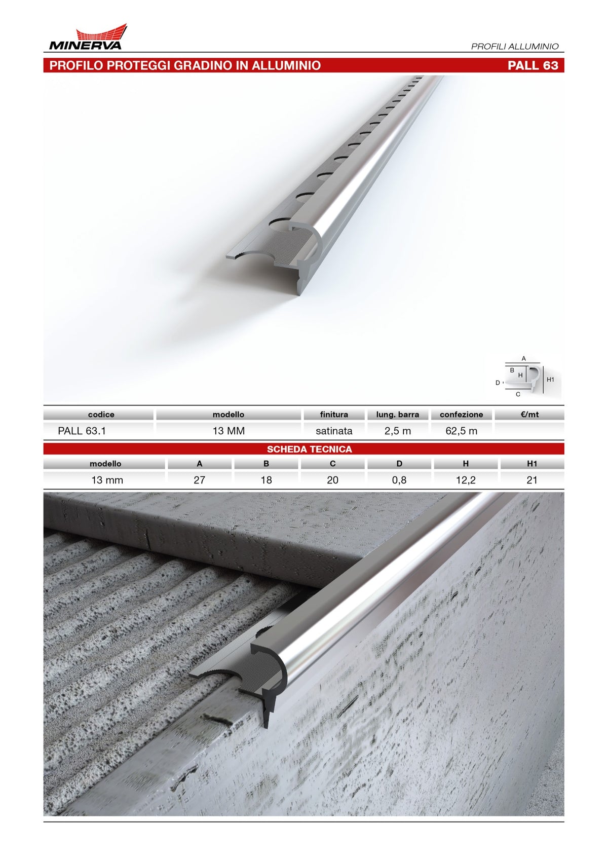 Profilo proteggi gradino in ALLUMINIO. Barra 2.5 m