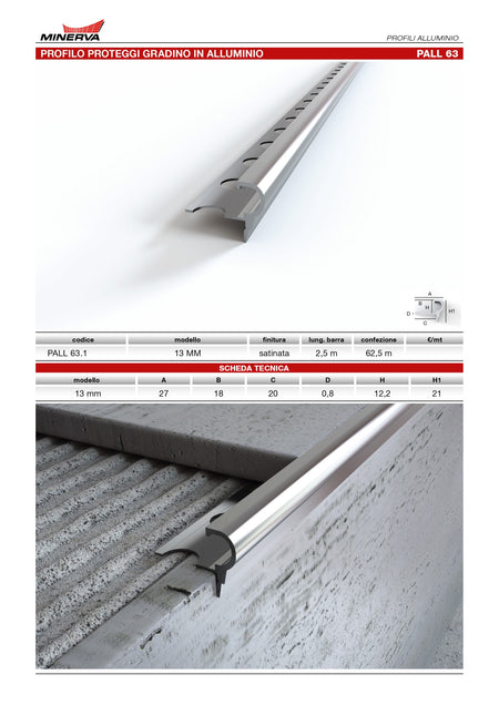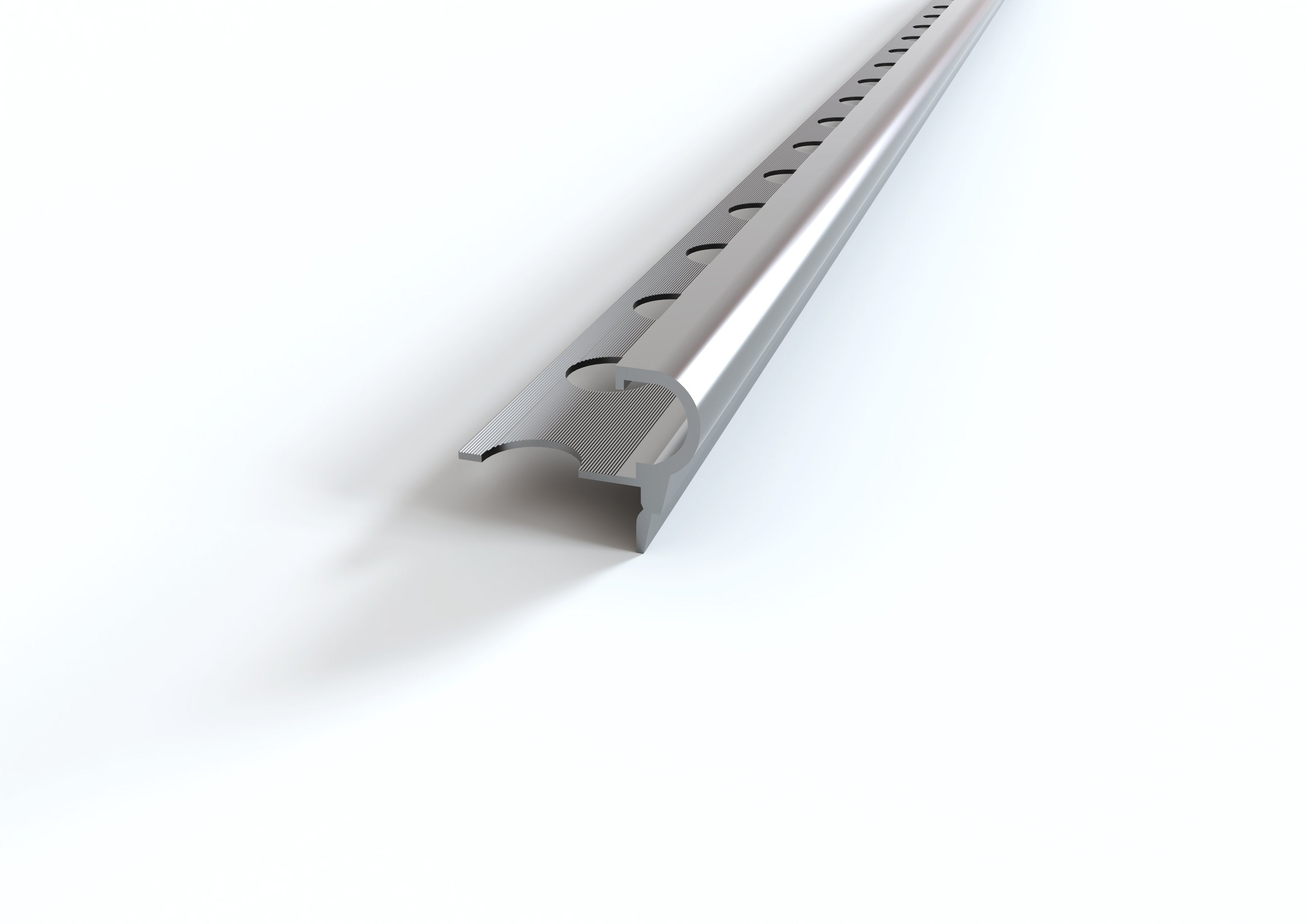 Design Funzionale: Dotato di un'aletta traforata, il profilo assicura un'ottima adesione all'adesivo, evitando sollevamenti e mantenendo una stabilità costante nel tempo. La finitura arrotondata della parte a vista offre un aspetto curato, mentre la superficie verticale si appoggia saldamente sull'alzata della scala, garantendo una perfetta integrazione con la struttura.
