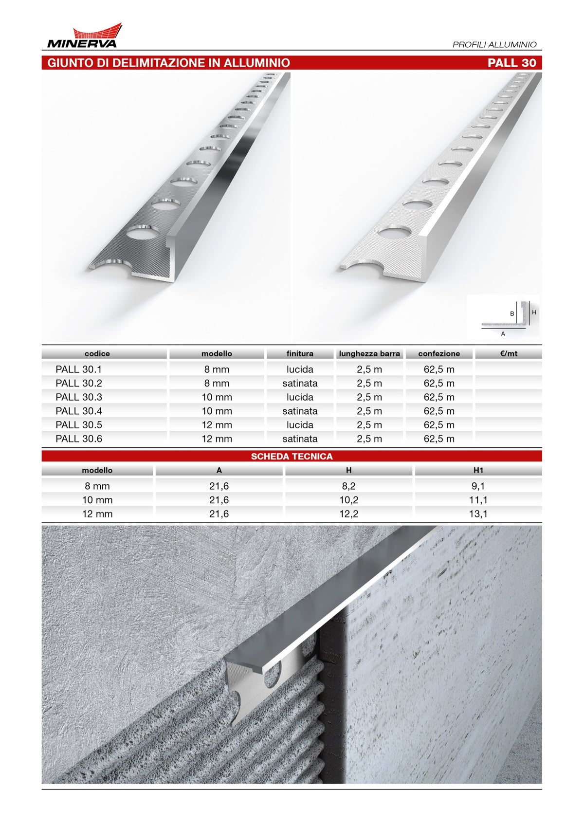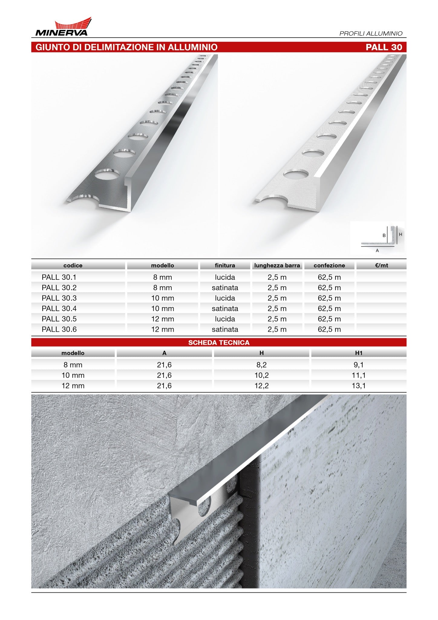 Disponibile in varie misure e finiture, questo profilo si adatta perfettamente a ogni esigenza progettuale, garantendo un risultato finale elegante e resistente nel tempo.