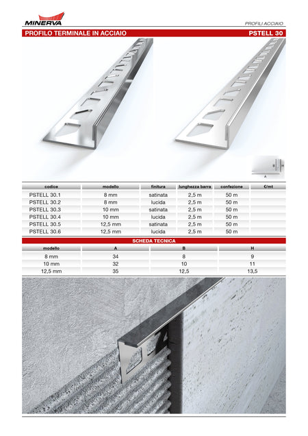 Profilo terminale e delimitazione in ACCIAIO per piastrelle. Barra 2.5 m
