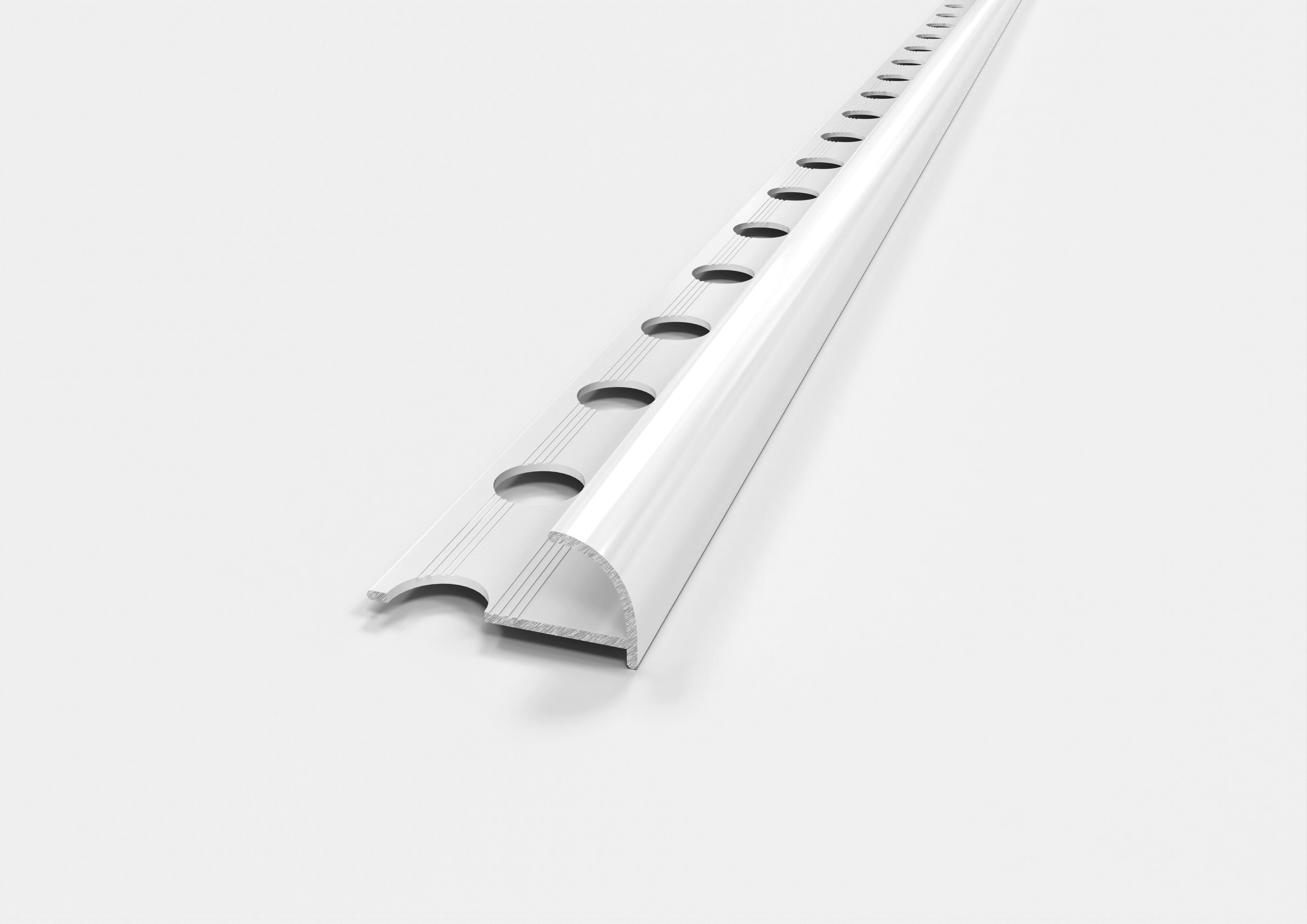 Il profilo in alluminio bianco, caratterizzato da una sezione tonda, è la soluzione ideale per rifinire e proteggere gli angoli delle piastrelle. Progettato per unire funzionalità ed estetica, aggiunge un tocco di eleganza, proteggendo al contempo gli angoli da scheggiature e danni nel tempo. Ideale per il settore delle finiture e delle ristrutturazioni, consente di ottenere transizioni omogenee e sicure tra le superfici piastrellate.
